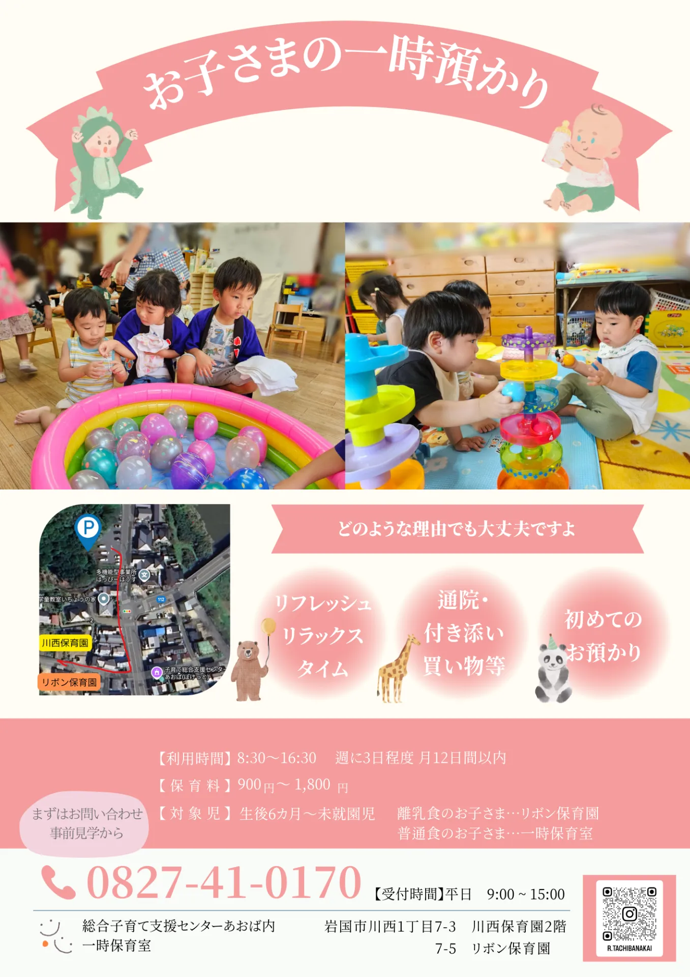 ※離乳食のお子さまはリボン保育園でお預かりいたします