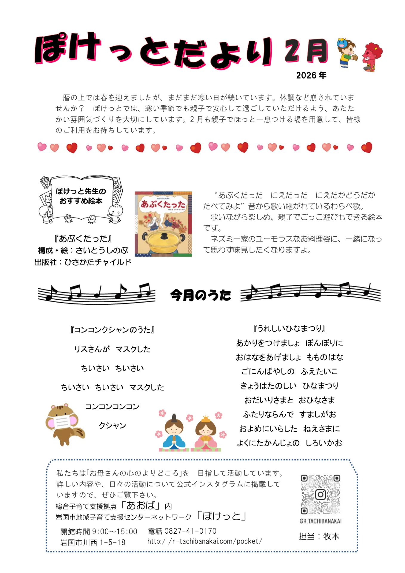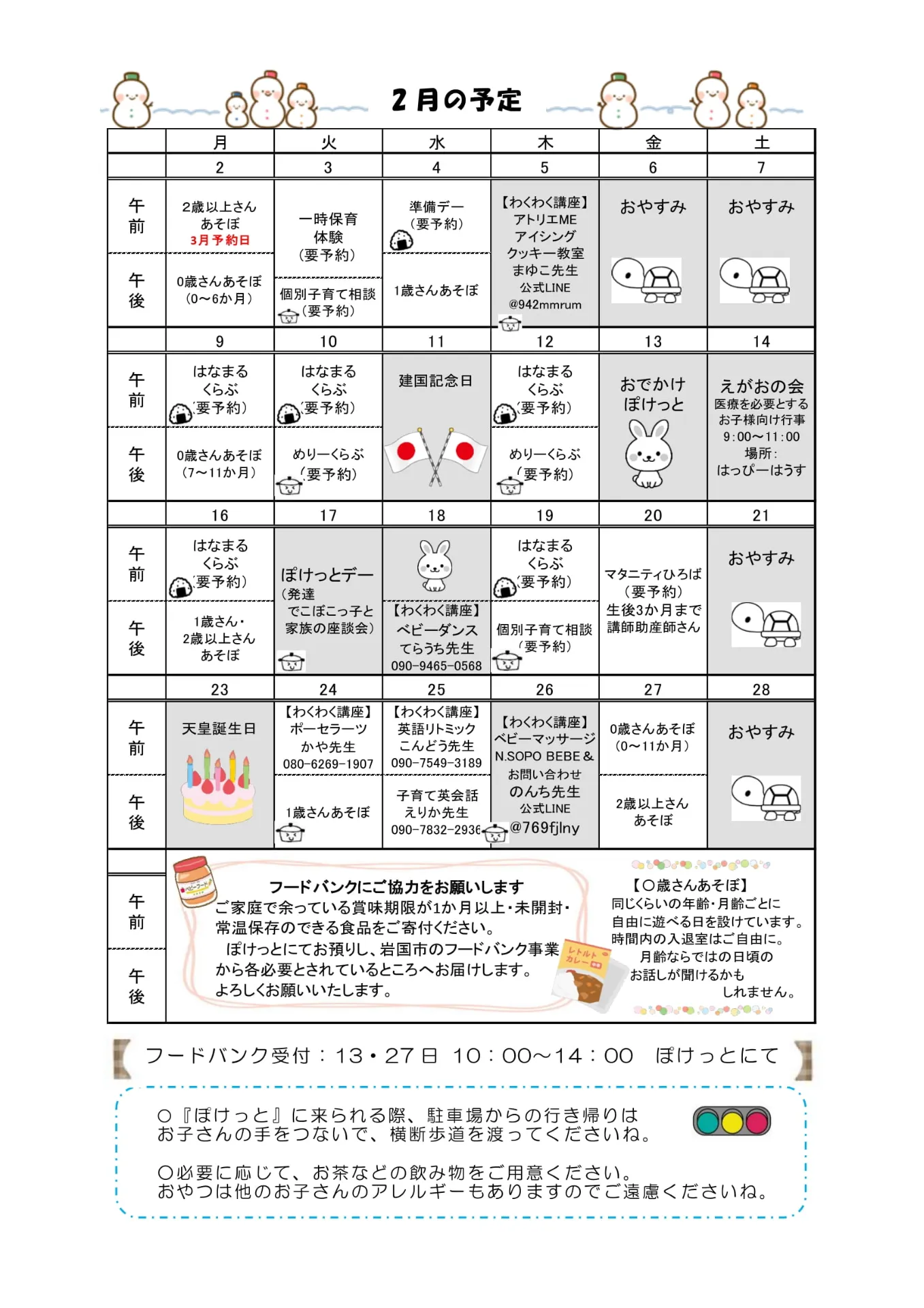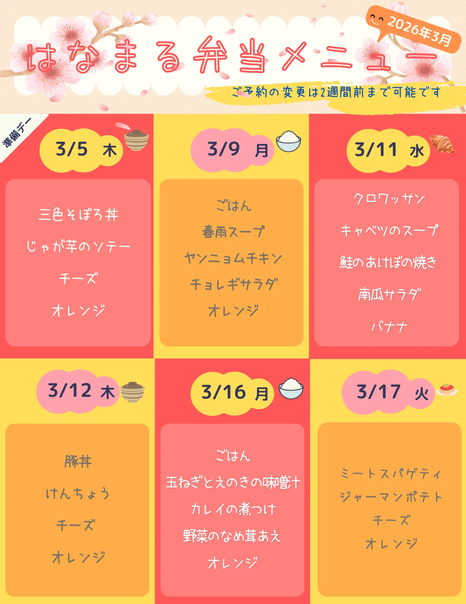 支援センターぽけっとの予定表やはなまる弁当、ぷちデリカに関する情報を掲載しています。給食を作る先生の料理教室や手形アートづくり、マタニティひろばなど、様々な企画をご用意しております。保護者様が抱えている悩みや不安を受け取りながら、子ども達も保護者様も笑顔で過ごせるように、寄り添ったサービスを提供いたします。子育てで不安なことはお気軽にご相談ください。