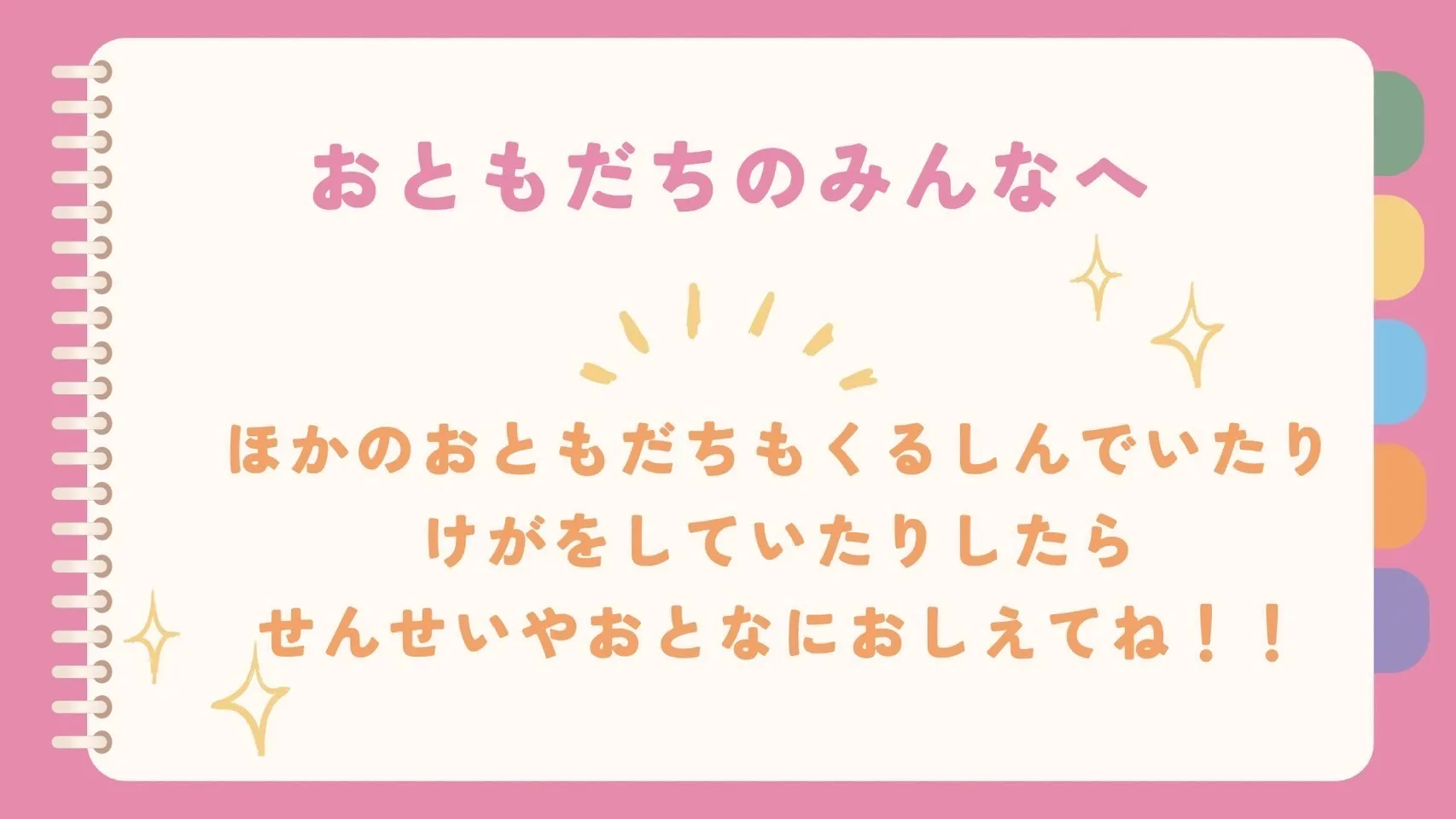 👧🏻「(なにかあったら)せんせいにおしえるー!」