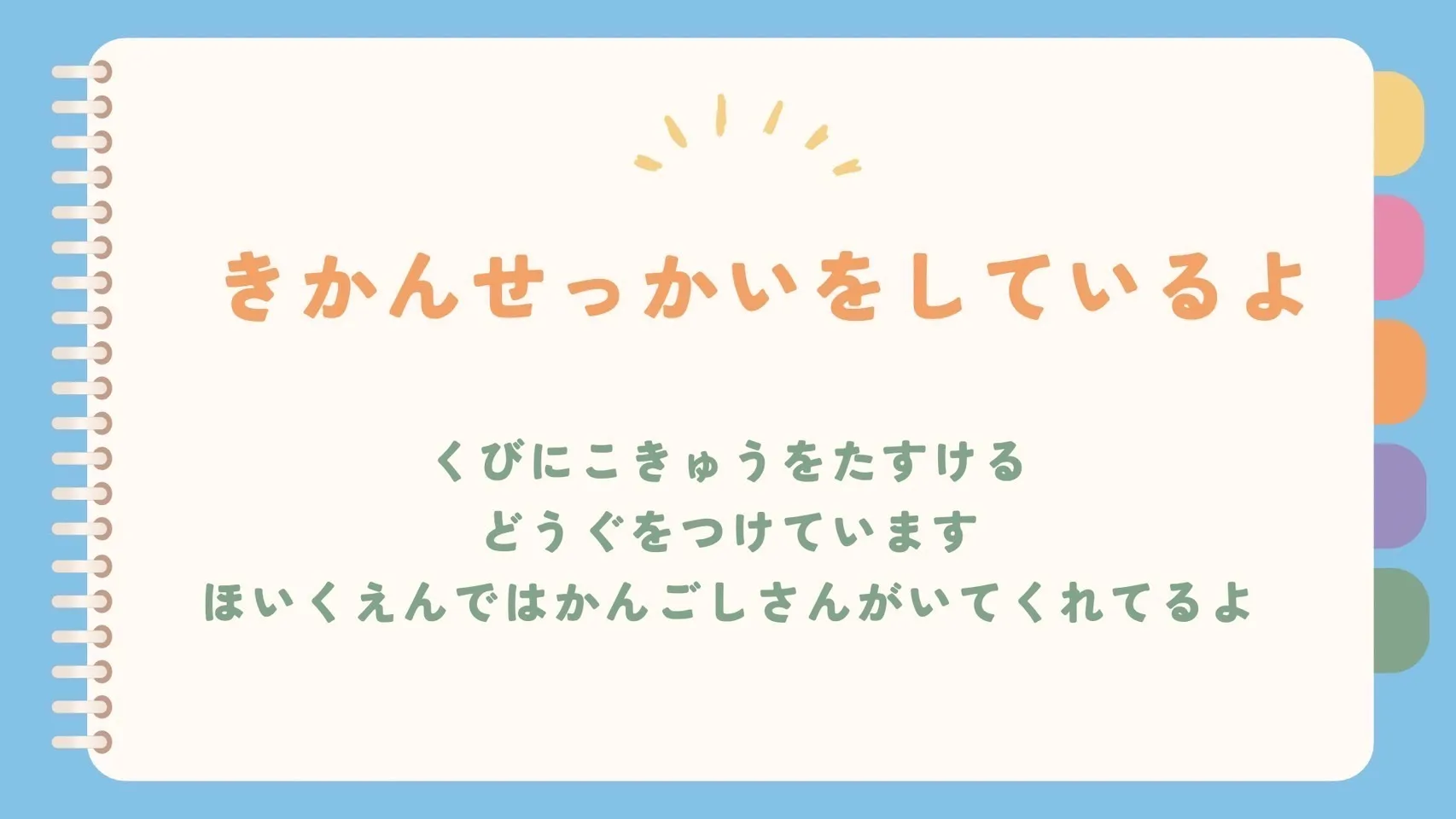 息子の「きかんせっかい」について、紙芝居風に説明文を作成し園児に説明をさせていただきました😌